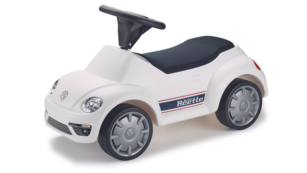 Kto sa chce stať vodičom vozidla Volkswagen, mal by začínať už od malička. Detské autíčko Junior Beetle antracitovej alebo bielej farby umožňuje malým nezbedníkom vo veku od 12 mesiacov vyraziť na veľkú jazdu. Čalúnené sedadlo a tiché pneumatiky zvyšujú pohodlie malého vodiča aj jeho publika. Pri bielej verzii sa dá doplniť maska chladiča, zadný difúzor, dve bočné odrazky, prístrojový panel a bočné deko račné pásy s označením modelu. Junior Beetle sa dodáva v peknej darčekovej krabici.